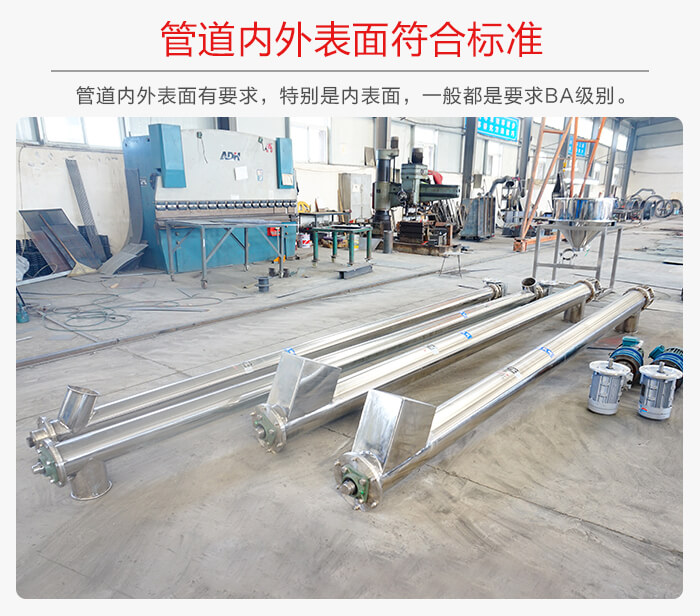 除了材質(zhì)以外,還對管道內(nèi)外表面有要求,特別是內(nèi)表面,一般都是要求BA級別,管道表面的光潔標(biāo)準(zhǔn)主要有AP、BA、EP三種,EP是電化學(xué)級別比較貴!所以不銹鋼螺旋輸送機(jī)使用到食品行業(yè)是可以的。