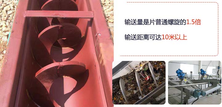 3、輸送量是同直徑螺旋的1.5倍,輸送距離可達(dá)10米以上,根據(jù)客戶要求,采用多級(jí)串聯(lián)安裝。